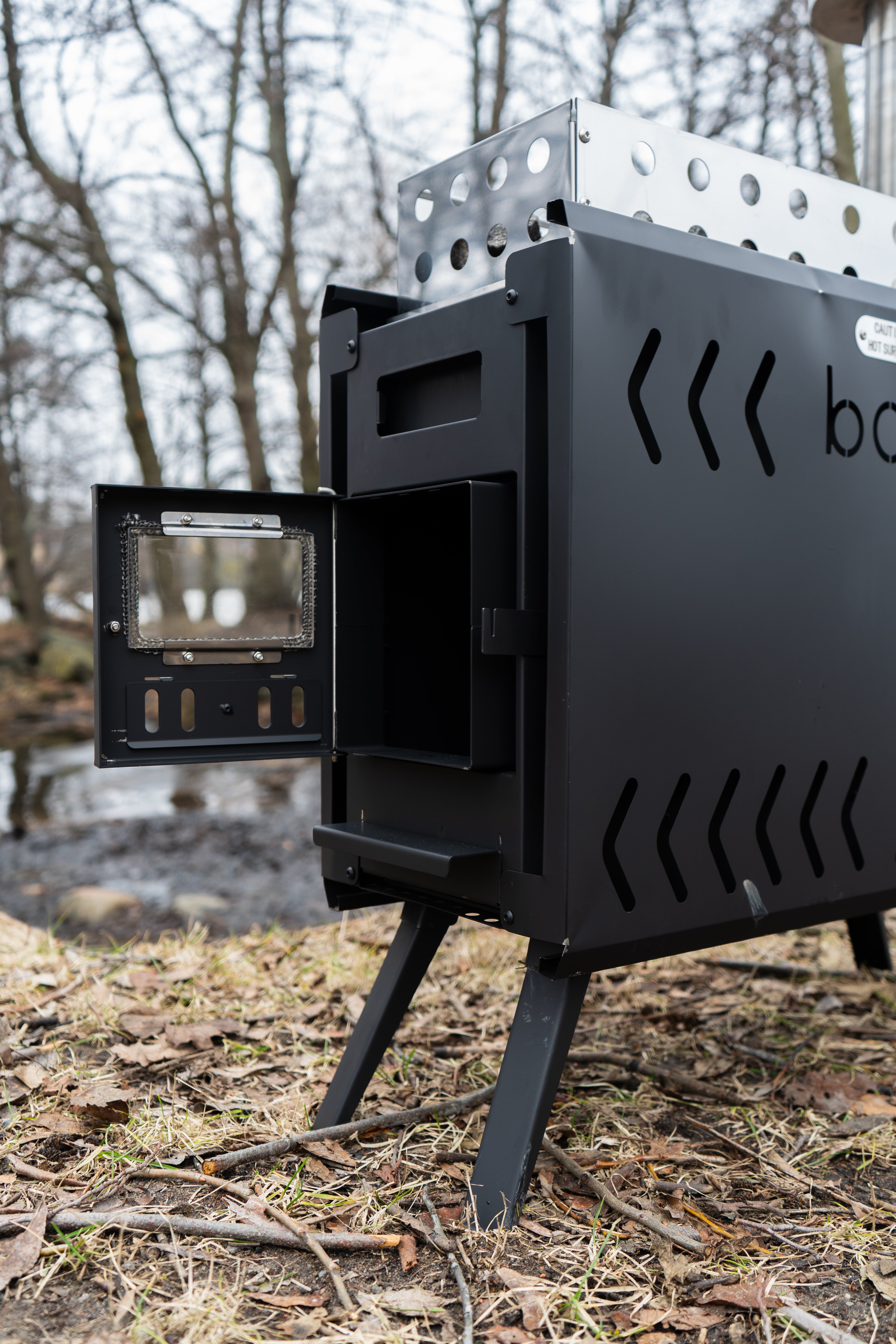 Thanks to the tent’s pop-up design, you can set it up yourself in just 2 minutes. The stove’s chimney stores inside the stove body and is easy to assemble. In the video, you’ll see Sebastian and Viktor set up the entire sauna in just over 5 minutes.